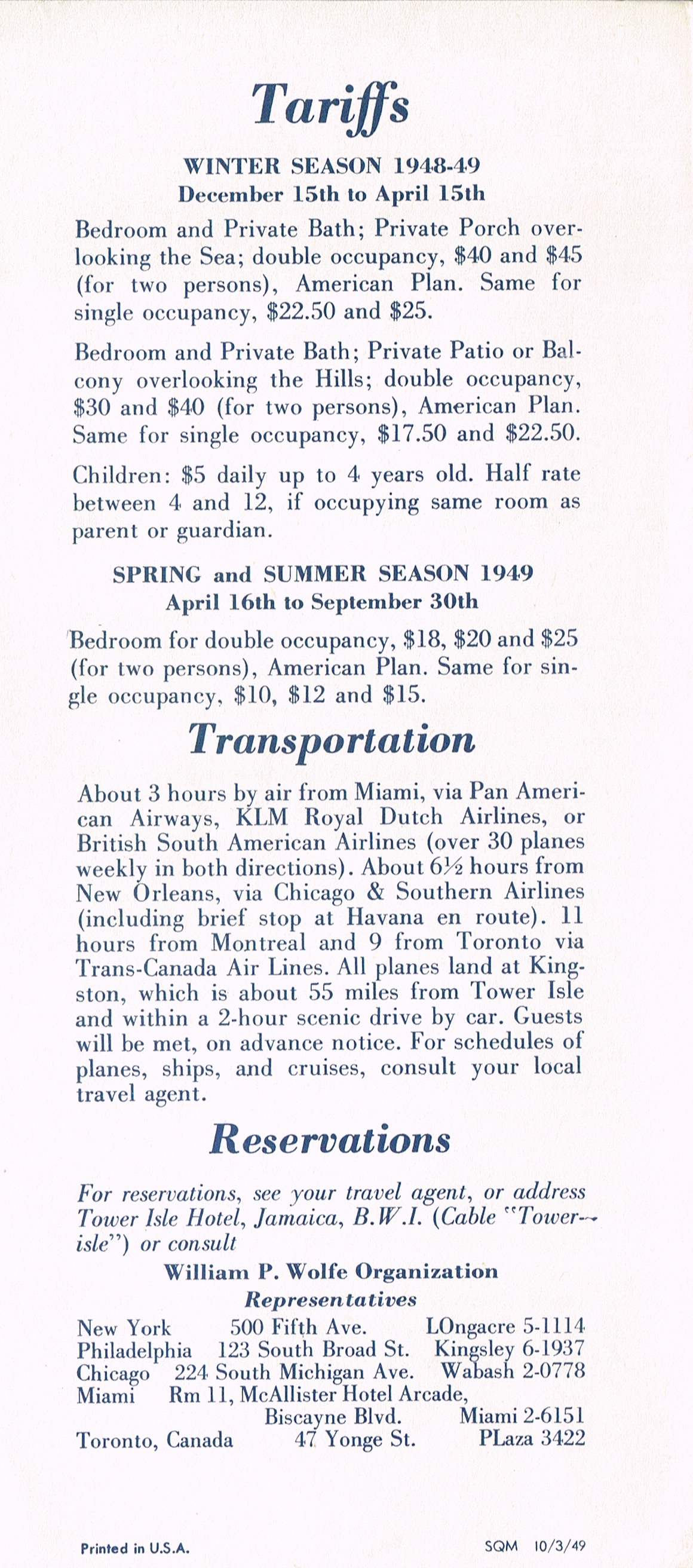 ← Tower Isle Hotel June 1948, Ocho Rios