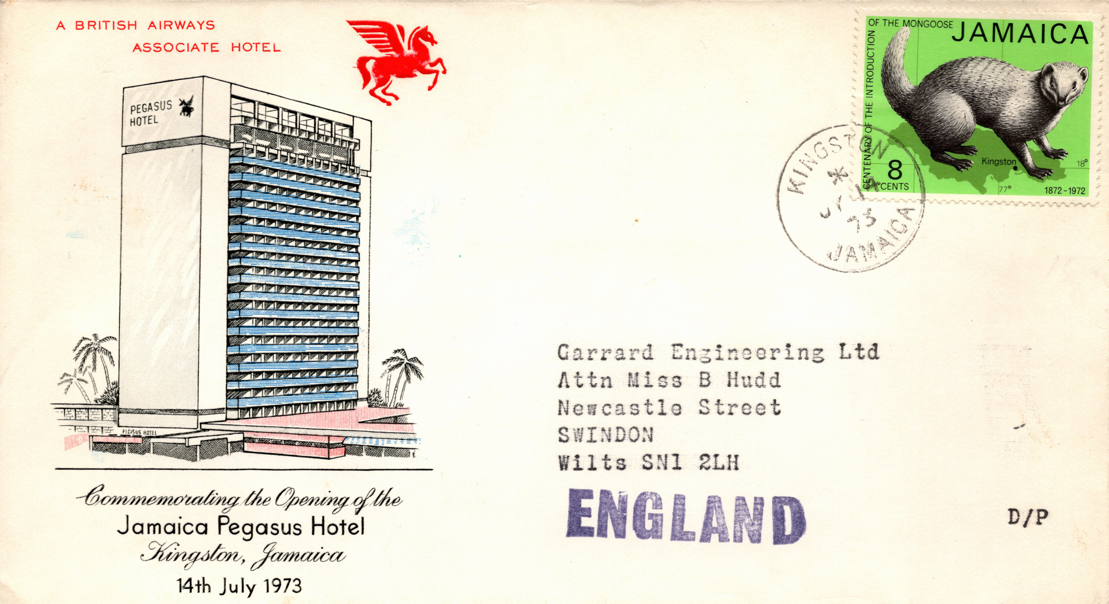 Jamaica Pegasus First Day Cover 1973